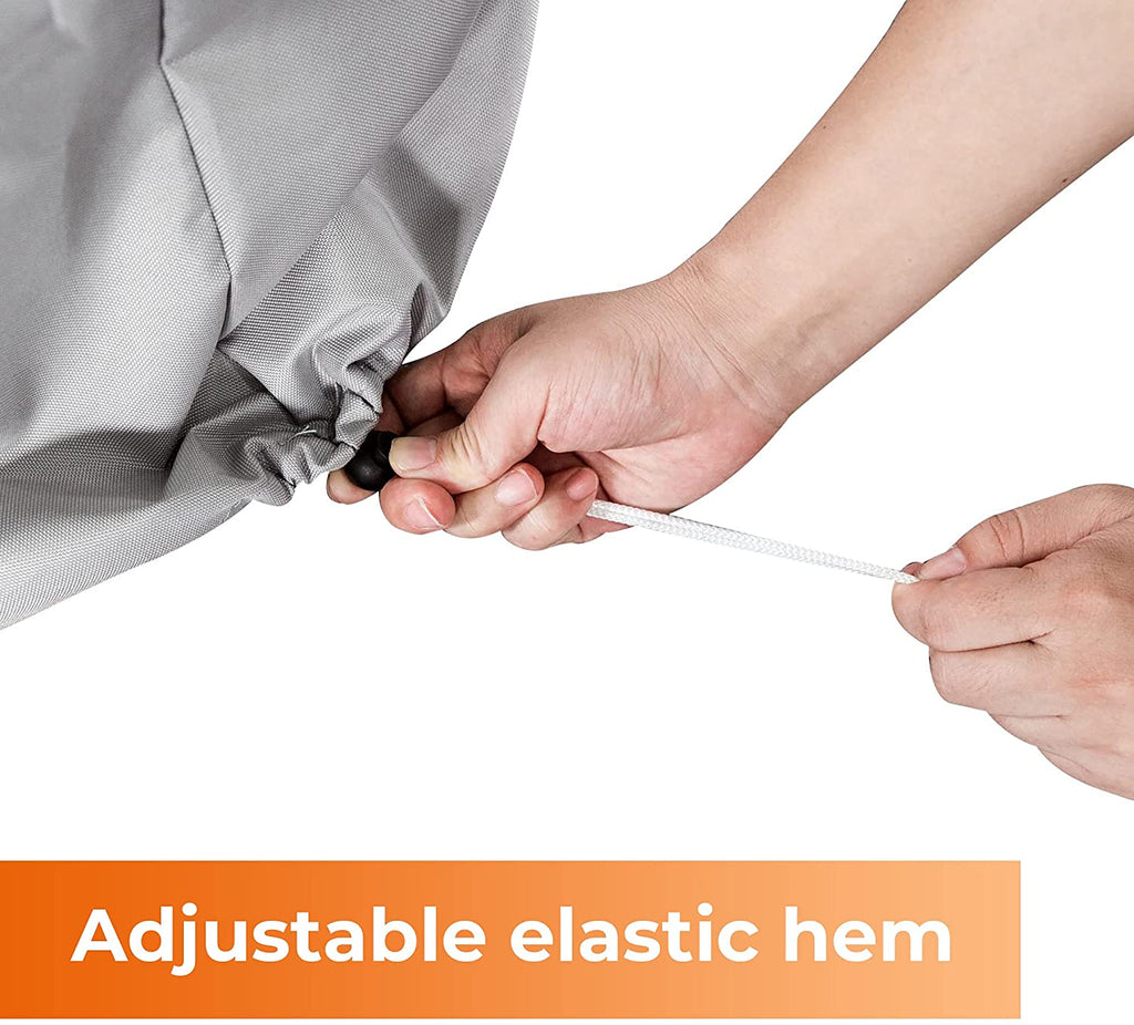 SECURE QUICK RELEASE SYSTEM: The elastic cord around the bottom hem ensures a tight fit to provide your motor with 360 degrees of all-around protection. No more worry about your motor cover will blow away in a strong wind!