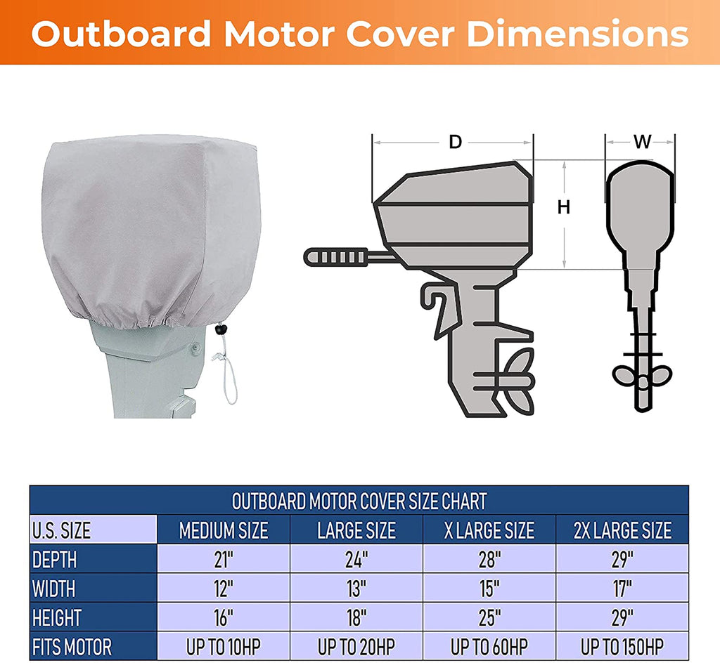WATERPROOF PERFORMANCE: The boat motor cover is made of 300D polyester fabric with a waterproof PU coating, which protects your boat engine against damage from wind, dust, and other natural elements...always keeping it in good condition. This 300D engine cover is also prevent against the cold down to -68 Fahrenheit to protect your boat motor in the winter months too.
