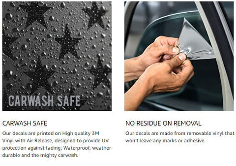 Our decals are always made of high grade vinyl ensuring quality 100% of the time. These will never leave unwanted residue or stains after being removed.